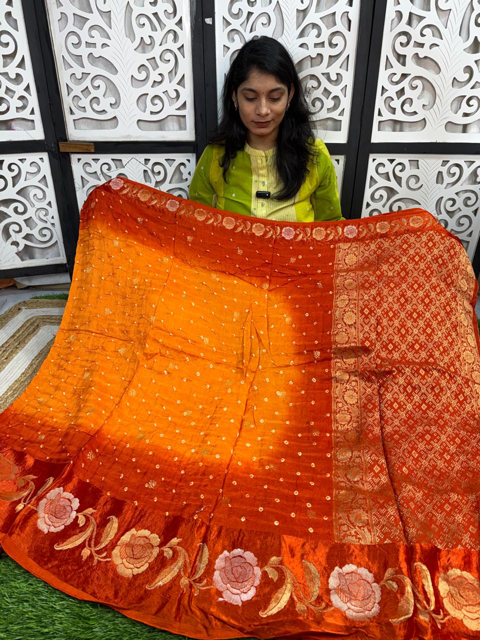 HomeSareesSilkBanaras silkHandloom Bandini Desighn SareeHandloom Bandini Desighn Saree₹4,200.00 Color Choose an optionOrangeClear Handloom Bandini Desighn Saree quantity Buy now SKU: N/A Categories: Banaras silk, Sarees, Silk Product ID: 45536 Description Reviews (0) Additional information Description Bright orange saree with delicate gold butti work, a rich woven border, and floral zari pallu, giving it a festive and elegant traditional look. Reviews There are no reviews yet. Be the first to review “Handloom Bandini Desighn Saree” Cancel replyYour email address will not be published. Required fields are marked *Name * Email * Save my name, email, and website in this browser for the next time I comment. Your review * I agree that my submitted data is being collected and stored. Additional information Color Orange Related products Vedarth Cotton Saree ₹899.00 Buy now This product has multiple variants. The options may be chosen on the product page Soft Silk Sarees ₹1,450.00 Buy now This product has multiple variants. The options may be chosen on the product page Light Purple and Green Silk Saree ₹7,400.00 Buy now This product has multiple variants. The options may be chosen on the product page