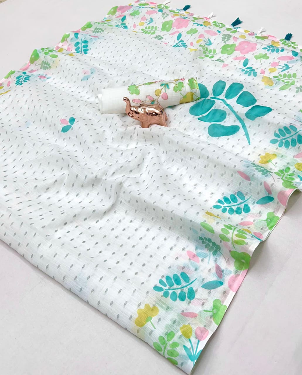 Beautiful pallu and border all over the saree with tassels