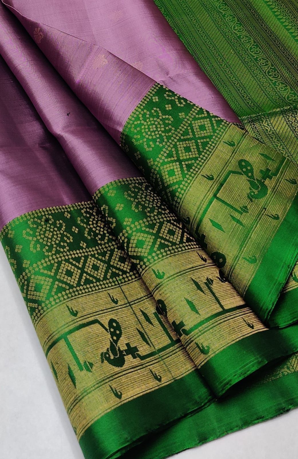 A Light Purple and Green silk saree is a traditional Indian garment known for its luxurious fabric, rich texture, and elegant drape. Made from silk, a natural fiber, these sarees are a symbol of grace and are often worn for special occasions like weddings and festivals.
